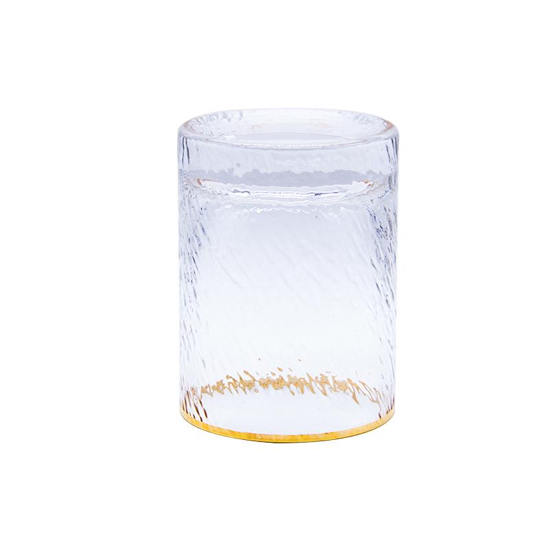 This glass is made of high-quality glass, with a capacity of 250 ml and 300 ml, and a simple and exquisite design. The surface of the cup is frosted, which is not only non-slip and easy to hold, but also adds a unique texture and visual enjoyment. There is gold rim decoration around the mouth of the cup, which makes it more noble and elegant. Whether for home or business use, this glass is ideal for enjoying your drinks.